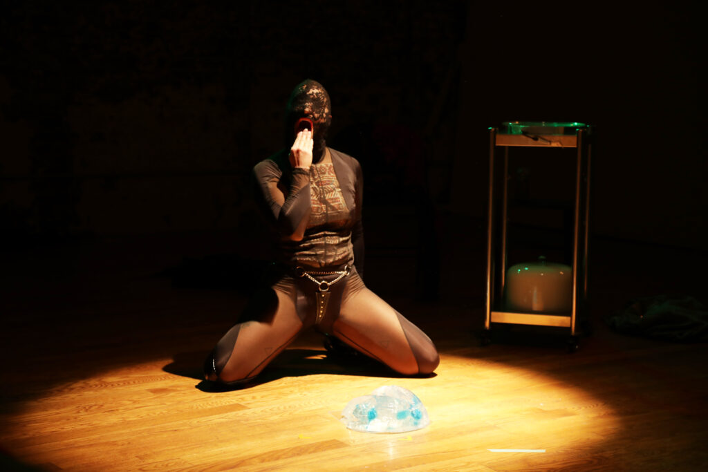 Centering queer sensuality, pleasure, and fantasy, There are no words, so may it be the end satirically comments on the “counter-terror” industry of Zionist state. The performance interrogates how the success of the industry is dependent on the constructed identity of the Zionist State as existing in a perpetual state of defense and moral exception.